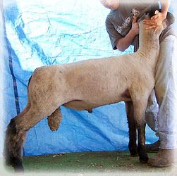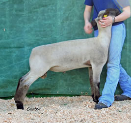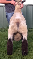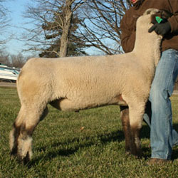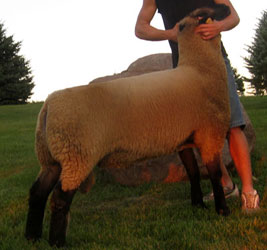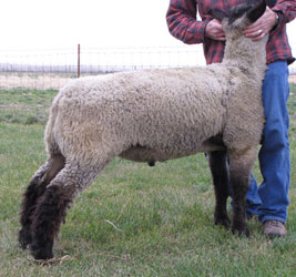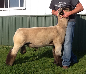 "Bravo"is sired by Dee Brother's "Grizz" who needs no introduction and his dam is Hurliman 1060, a Revolution daughter. She was a very competitive show ewe and has become a very consistent donor. "Revolution" was Hurliman's popular "Guywire" son and twin brother to Amburgey's Grand Champion at the 2010 KY State Fair. "Bravo" combines everything we have been looking for with his unbelievable look, great rib and tremendous shape and expression all the way down his top. He is extremely sound and as structurally correct as you could ask for. His lamb crop looks very impressive and shows a lot of consistency which is a true example of a stud ram.